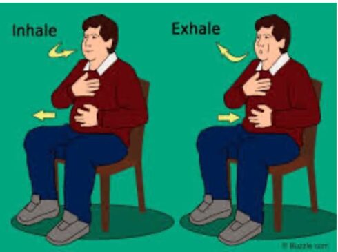 1. శ్వాస తీసుకునే వ్యాయామం: ముక్కు ద్వారా 4 సెకన్ల పాటు గాలిని లోపలికి పీల్చుకొని, నిదానంగా నోటి ద్వారా 6 సెకన్ల పాటు బయటకు వదలాలి. ఇలా రోజులో 5 సార్లు చేయాలి.