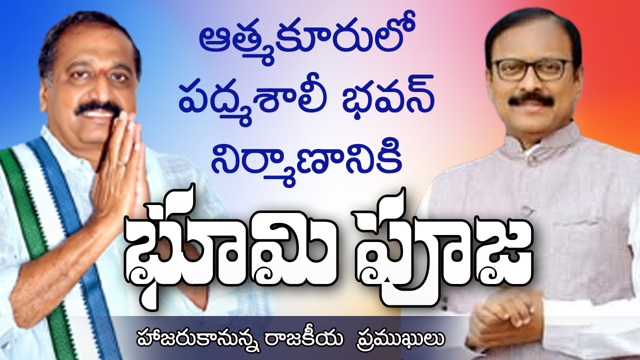 నంద్యాల: నంద్యాల జిల్లా ఆత్మకూరు మండల కేంద్రం మార్కండేయ నగర్లో పద్మశాలీ భవన్ను నిర్మించనున్నారు. సోమవారం (6-3-2023) ఉదయం 7. 25 గంటలకు భూమి పూజ ప్రారంభం కానుంది. శ్రీశైలం నియోజకవర్గ శాసన సభ్యులు శిల్పా చక్రపాణిరెడ్డి ఈ కార్యక్రమానికి హాజరై భూమి పూజను ప్రారంభించనున్నారు. విశిష్ఠ అతిథిగా కర్నూలు పార్లమెంట్ సభ్యులు, డాక్టర్ శింగరి సంజీవ కుమార్ విచ్చేస్తున్నారు. వీరితో పాటు గౌరవ అతిథులుగా అఖిల భారత పద్మశాలి సంఘం ఉపాధ్యక్షులు వద్ది నరసింహులు, రాయలసీమ ప్రాంతీయ పద్మశాలి సంఘం అధ్యక్షులు కొంకతి లక్ష్మీనారాయణ, ఉమ్మడి కర్నూలు జిల్లా పద్మశాలి సంఘం అధ్యక్షులు భీమునిపల్లె వెంకటసుబ్బయ్య హాజరవుతున్నారు. ఈ కార్యక్రమానికి పద్మశాలీయులంతా హాజరై జయప్రదం చేయాలని ఆత్మకూరు తాలుకా పద్మశాలీ సంఘం భక్త మార్కండేయ దేవస్థాన కమిటి ఆహ్వానం పలుకుతోంది.