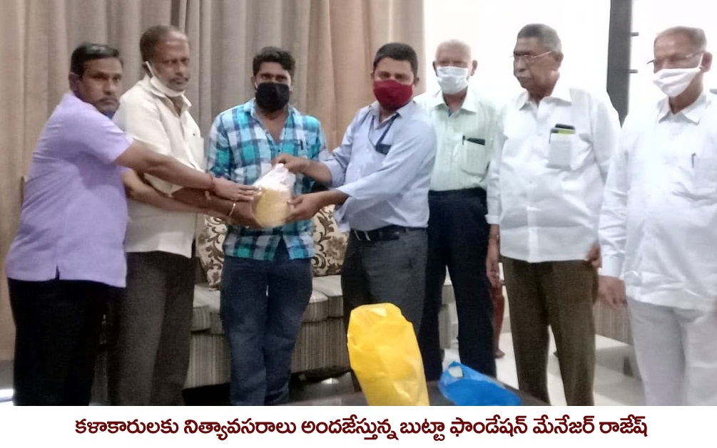 వయోవృద్ధుల సంక్షేమ సంఘం సభ్యులు పేద కళాకారులకు జూన్‌ 30వ తేదీ కర్నూలులోని బుట్టా ఫౌండేషన్‌ కార్యాలయంలో నిత్యావసర సరుకులు పంపిణీ చేశారు. ఈ కార్యక్రమానికి ముఖ్య అతిథిగా సంక్షేమ సంఘం అధ్యక్షులు సహదేవరెడ్డి హాజరై మాట్లాడారు. కరోనా నేపథ్యంలో కుటుంబం గడవక ఇబ్బందిపడుతున్న కళాకారులకు నిత్యావసరాలు అందజేశామని తెలిపారు. ఒక్కొక్కరికి రూ. వెయ్యి విలువ చేసే నిత్యావసరాలను 12 మంది కళాకారులకు ఇచ్చామన్నారు. సంఘం కార్యదర్శి నాగరాజు మాట్లాడుతూ కరోనా కారణంగా ఆర్థికంగా చితికిన కళాకారుల కుటుంబాలను ప్రభుత్వం ఆదుకోవాలని కోరారు. కార్యక్రమంలో బుట్టా ఫౌండేషన్‌ మేనేజర్‌ రాజేష్‌, సంఘం కోశాధికారి క్రిష్టఫర్‌ , జాతీయ బీసీ సంక్షేమ సంఘం ప్రధాన కార్యదర్శి నక్కలమిట్ట శ్రీనివాసులు, గోశాల ప్రతినిధులు శ్రీకాంత్‌, వెంకటేశ్వర్లు పాల్గొన్నారు.