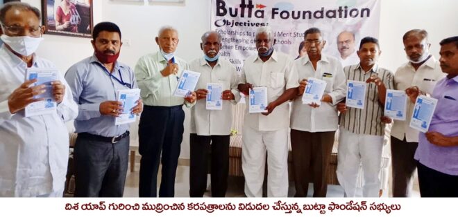 మహిళలపై అత్యాచారాలు, హత్యలు పెరిగిపోతున్న నేపథ్యంలో ప్రభుత్వం తీసుకుంటున్న చర్యల్లో భాగంగా దిశ మొబైల్‌ యాప్‌ గురించి బుట్టా ఫాండేషన్‌ ప్రజలకు అవగాహన కల్పించనుంది. యాప్‌ను వినియోగించడం వల్ల కలిగే ప్రయోజనాలపై ముద్రించిన కరపత్రాలను ఫాండేషన్‌ సభ్యులు జూన్‌ 29వ తేదీ బుట్టా ఫౌండేషన్‌ కార్యాలయంలో విడుదల చేశారు. త్వరలో కరపత్రాలను ఇంటింటికి పంపిణీ చేస్తామని ఫౌండేషన్‌ మేనేజర్‌ రాజేష్‌ తెలిపారు. కార్యక్రమంలో జాతీయ బీసీ సంక్షేమ సంఘం ప్రధాన కార్యదర్శి నక్కలమిట్ట శ్రీనివాస్‌, రిటైర్డ్ ప్రిన్సిపాల్‌ నాగరాజు, వయోవృద్ధుల సంక్షేమ సంఘం అధ్యక్షులు సహదేవ రెడ్డి, కోశాధికారి క్రిస్టఫర్‌, నీలకటేశ్వర స్వామి గుడి చైర్మన్‌ యల్లప్ప, గోశాల ప్రతినిధులు శ్రీకాంత్‌, వెంకటేశ్వరులు, ఫౌండేషన్‌ కో ఆర్డినేటర్‌ హేమలత తదితరులు పాల్గొన్నారు.website : www.chenetamitra.com