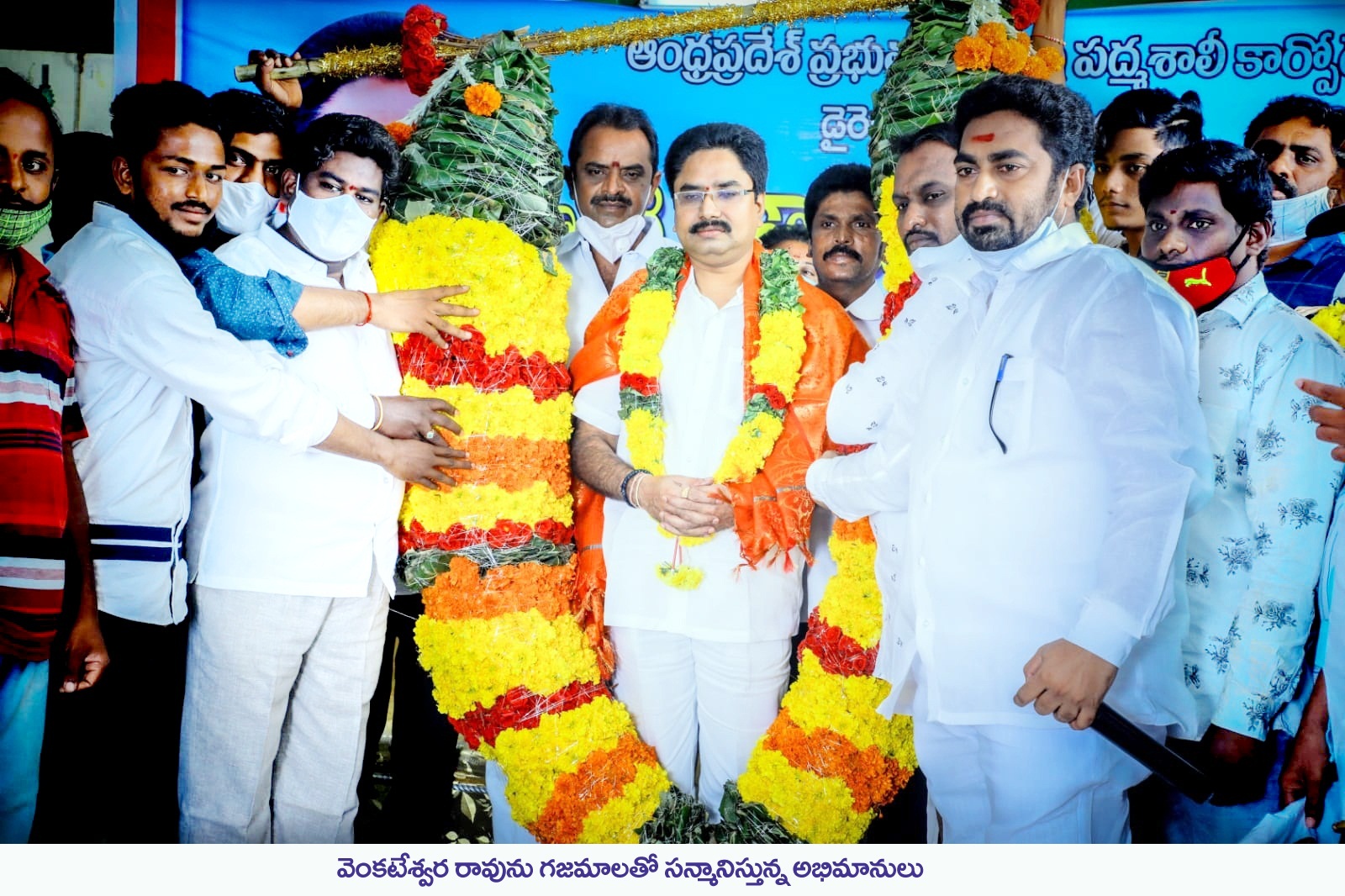 చేనేతల అభ్యున్నతికి కృషి చేస్తానని ఆంధప్రదేశ్ పద్మశాలీ కార్పొరేషన్ డైరెక్టర్ నక్కా వెంకటేశ్వర రావు పేర్కొన్నారు. పొట్టి శ్రీరాములు నెల్లూరు జిల్లా వెంకటగిరి పట్టణానికి చెందిన వెంకటేశ్వర రావు ప్రముఖ వస్త్ర వ్యాపారి, వైసీపీ నాయకులు. తిరుపతి పార్లమెంటు నియోజకవర్గ చేనేత విభాగం అధ్యక్షులు కూడా. ఇటీవల డైరెక్టర్గా ఎంపిక కావడంతో అక్టోబర్ 31వ తేదీన వెంకటగిరి పట్టణ, నెల్లూరు జిల్లాకు చెందిన మిత్రులు, శ్రేయోభిలాషులు, చేనేత కళాకారులు వెంకటగిరిలోని పద్మశాలీయుల కల్యాణ మండపంలో సన్మానించారు. ఈ సందర్భంగా పలువురు మాట్లాడుతూ వెంకటేశ్వరరావు ఎన్విఆర్ చారిటబుల్ ట్రస్టు ద్వారా వెంకటగిరిలో పలు సేవా కార్యక్రమాలు నిర్వహిస్తూ ప్రజల ఆదరాభిమానాలు చూరగొన్నారని, వస్త్ర వ్యాపారిగా మంచి పేరు గడించారని పేర్కొన్నారు. ఆయనను భవిష్యత్తులో మరెన్ని పదవులు వరించాలని ఆకాంక్షించారు.