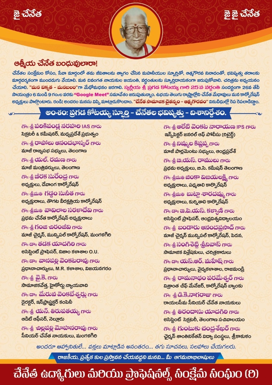 26న ప్రగడ కోటయ్య వర్ధంతి – ‘చేనేతల భవిష్యత్తు – దిశానిర్దేశం’ అంశంపై వీడియో కాన్ఫరెన్స్