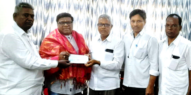చేనేతమిత్ర ప్రతినిధి, హైదరాబాద్: ప్రముఖ పారిశ్రామికవేత్త, తెలంగాణ రాష్ట్ర పద్మశాలీ సంఘం వ్యవస్థాపక అధ్యక్షులు రామ శ్రీనివాస్ మరోసారి ఉదారతను చాటుకున్నారు. శ్రీశైలక్షేత్రంలోని పద్మశాలి అన్నసత్రానికి రూ.10 లక్షలు విరాళాన్ని చెక్కు రూపంలో ఈ నెల 26వ తేదీన అందజేశారు. అన్నసత్రంలో వాటర్ సంపు నిర్మాణం కోసం ఈ డబ్బును వినియోగించనున్నారు. ఈ సందర్భంగా రామశ్రీనివాస్కు పలువురు పద్మశాలీయులు అభినందనలు తెలిపారు.