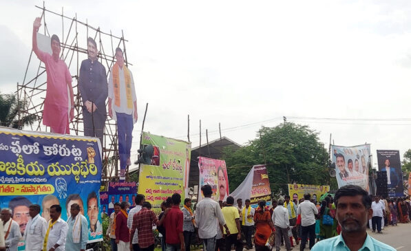 సభా ప్రాంగణంలో భారీ కటౌట్లు ఏర్పాటు చేశారు. సభకు విచ్చేస్తున్న పద్మశాలీయులకు స్వాగతం పలుకుతూ..దారి పొడవునా ప్రముఖుల ఫొటోలతో, పద్మశాలీ కులపెద్దలతో ఏర్పాటు చేసిన ఫ్లెక్సీలు దర్శనిమిచ్చాయి.