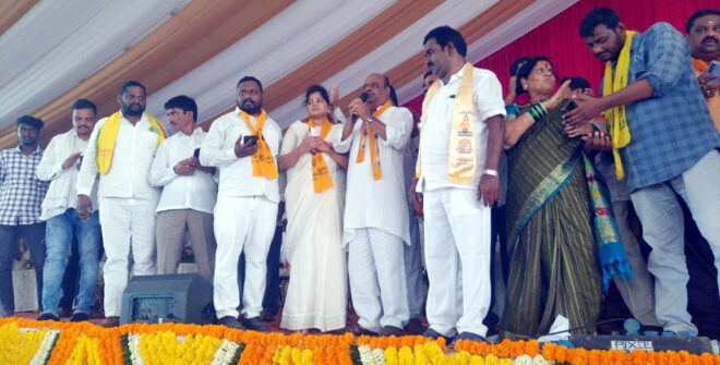 చేనేతమిత్ర ప్రతినిధి, హైదరాబాద్: తెలంగాణ రాష్ట్రం జగిత్యాల జిల్లా కోరుట్లలో ఈ నెల 13వ తేదీన నిర్వహించిన పద్మశాలీయుల రాజకీయ యుద్ధభేరికి కులస్థులు భారీ సంఖ్యలో విచ్చేశారు. వివిధ ప్రాంతాల నుంచి వాహనాల్లో సభాస్థలికి చేరుకున్నారు. అక్కడే సెల్ఫీలు తీసుకున్నారు. అతిథులు ప్రసంగానికి ముందు, తర్వాత కొందరు పద్మశాలీ ప్రముఖులు తమ వాణిని సభకు వినిపించారు. తమ కార్యవర్గ సభ్యులతో ఫొటోలు తీసుకున్నారు. మొత్తంగా పద్మశాలీయుల కోరుట్ల యుద్ధభేరి విజయవంతమైంది.