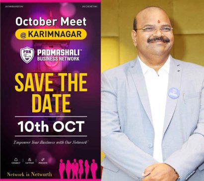 హైదరాబాద్‌: ఇటీవల బేగంపేట రోడ్‌లోని హోటల్ గ్రీన్‌పార్క్‌లో నిర్వహించిన పద్మశాలీ బిజినెస్ నెట్‌వర్క్ (PBN) సమావేశం విజయవంతమైందని చైర్మన్ వర్కాల బాలాజీ తెలిపారు. ఈ మీట్‌కు వివిధ ప్రాంతాల నుంచి సుమారు 50 మంచి వ్యాపారులు వచ్చారని ఆయన చెప్పారు. సెప్టెంబర్ 9న వరంగల్ జిల్లా హనుమకొండలో నిర్వహించిన PBN meet కూడా సక్సెస్ అయ్యిందన్నారు. సమావేశానికి హాజరయిన అతిథులు బిజినెస్ గ్రోత్ స్ట్రాటజిస్ట్ ఎం. వేణు కళ్యాణ్, TED ‘X’ స్పీకర్ డా. రిత్విక్‌కు, మీట్ విజయవంతానికి కృషిచేసిన PBN కోర్ కమిటీ సభ్యులు రామ్ తిరుమల, శంకర్ గుత్తి, నాగార్జున నేత, సీహెచ్ ప్రభాకర్, సీహెచ్ రచనకు ధన్యవాదాలు తెలిపారు.