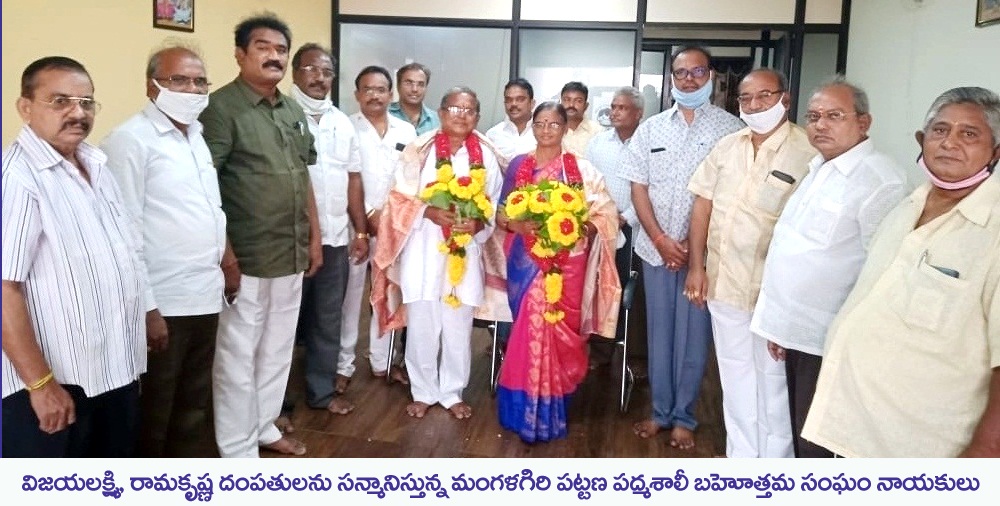 మంగళగిరికి చెందిన పద్మశాలీ కార్పొరేషన్‌ డైరెక్టర్‌ పారేపల్లి విజయలక్ష్మి, రామకృష్ణ దంపతులను మంగళగిరి పట్టణ పద్మశాలీ బహోత్తమ సంఘం నాయకులు అక్టోబర్‌ 29వ తేదీన కలిశారు. వారికి శాలువ కప్పి పుష్పగుచ్ఛాలు అందజేసి శుభాకాంక్షలు తెలిపారు. పద్మశాలీయుల అభ్యున్నతికి కృషి చేయాలని కోరారు. డైరెక్టర్‌ దంపతులను కలిసిన వారిలో సంఘం అధ్యక్ష,కార్యదర్సులు చింతకింది కనకయ్య, దామర్ల కుబేరస్వామి, ఉపాధ్యక్షులు గుత్తికొండ ధనుంజయరావు, కోశాధికారి గంజి రవీంద్రనాధ్‌, సహాయకార్యదర్శి, శివాలయం ట్రస్టుబోర్డు చైర్మన్ మునగపాటి వెంకటేశ్వరావు, సహాయకార్యదర్శి రామనాథం పూర్ణచంద్రరావు, ఉపాధ్యక్షులు దామర్ల పెదమస్తానరావు, కార్యవర్గ సభ్యులు తిరువీదుల కిరణ్‌, జొన్నాదుల భిక్షారావు, త్రిమూర్తులు, రామారావు, పారేపల్లి మహేష్‌ తదితరులు ఉన్నారు.